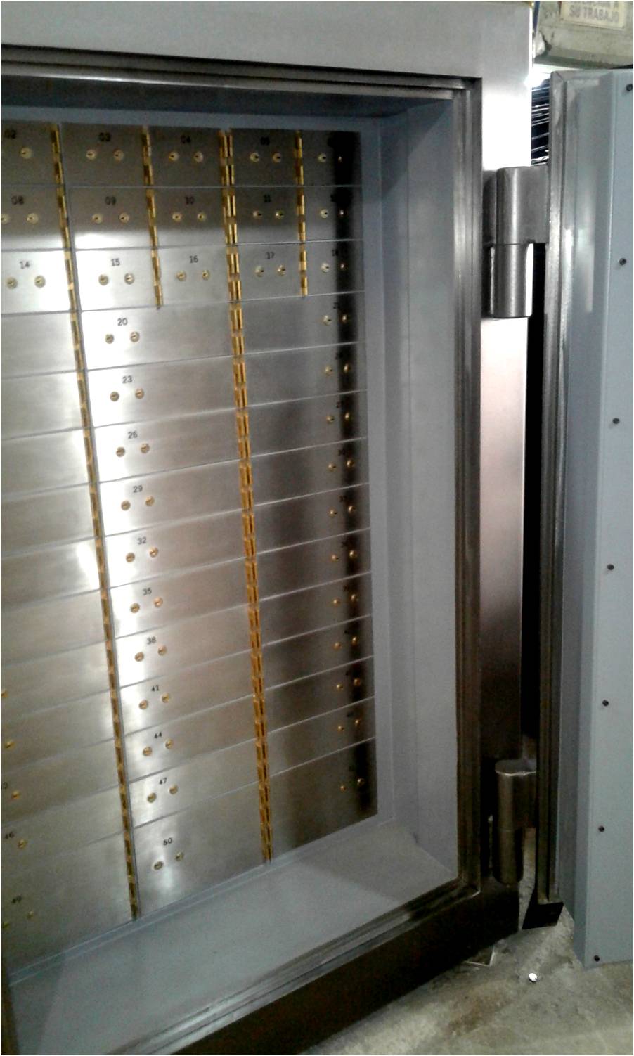 Cada compartimiento cuenta con un cofre guarda valores, los módulos pueden construirse con puertas de 100 x 150 mm | 100 x 300 mm | 200 x 300mm.